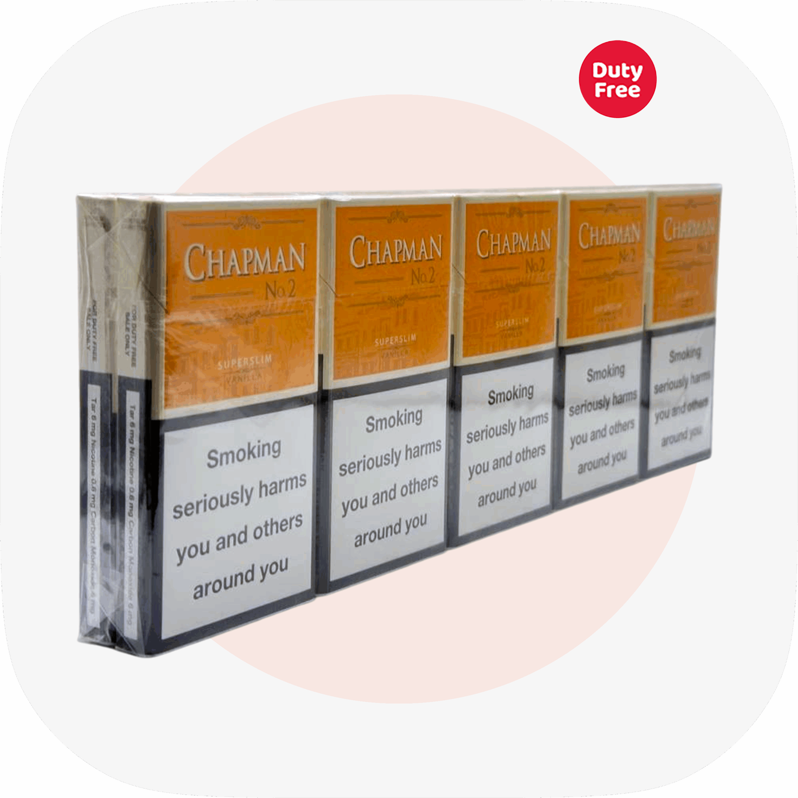 CHAPMAN Super Slims (Vanilla) – ключова особливість цих сигарет – насичений ванільний аромат як із пачки, так і під час куріння. Виробник часто просочує папір або фільтр солодким розчином, що підсилює ванільне післясмак на губах. Тютюнова суміш м’яка, без різкої гіркоти.