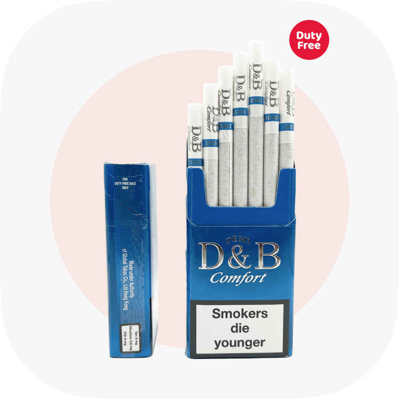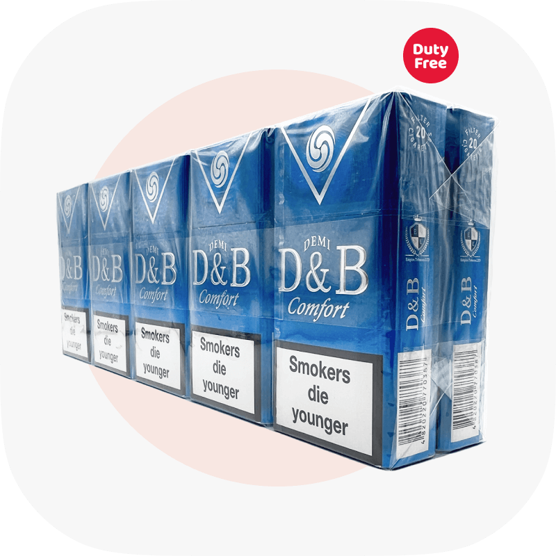 Тютюнова продукція D&B за короткий час зуміла полюбитись не лише вітчизняним, а й світовим курцям. Лінійка сигарет D&B виділяється наявністю суміші дуже якісного тютюну, який пройшов неодноразове очищення від домішок. Так сигарети D&B Demi Blue містять середню кількість нікотину і смол, але при цьому мають приємний, благородний смак без гіркоти, легкий аромат і густий дим.