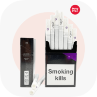 Це тютюнова продукція із середніми показниками нікотину (0,4 мг). Вміст смол сягає 6 мг. В упаковку помістили 20 сигарет. Привертає увагу сама пачка, вона забарвлена у фіолетові та сині тони. Якщо ви не бажаєте міняти смак сигарет під час куріння, можна натискати кнопку.