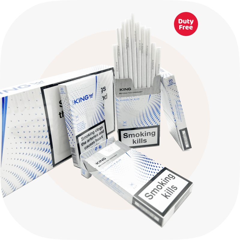 King Super Slims (6) виготовляються з високоякісного тютюну і мають делікатний аромат. З їх середньою крепкістю і стильним дизайном, ці сигарети надають можливість курити зі смаком та відчувати весь аромат.