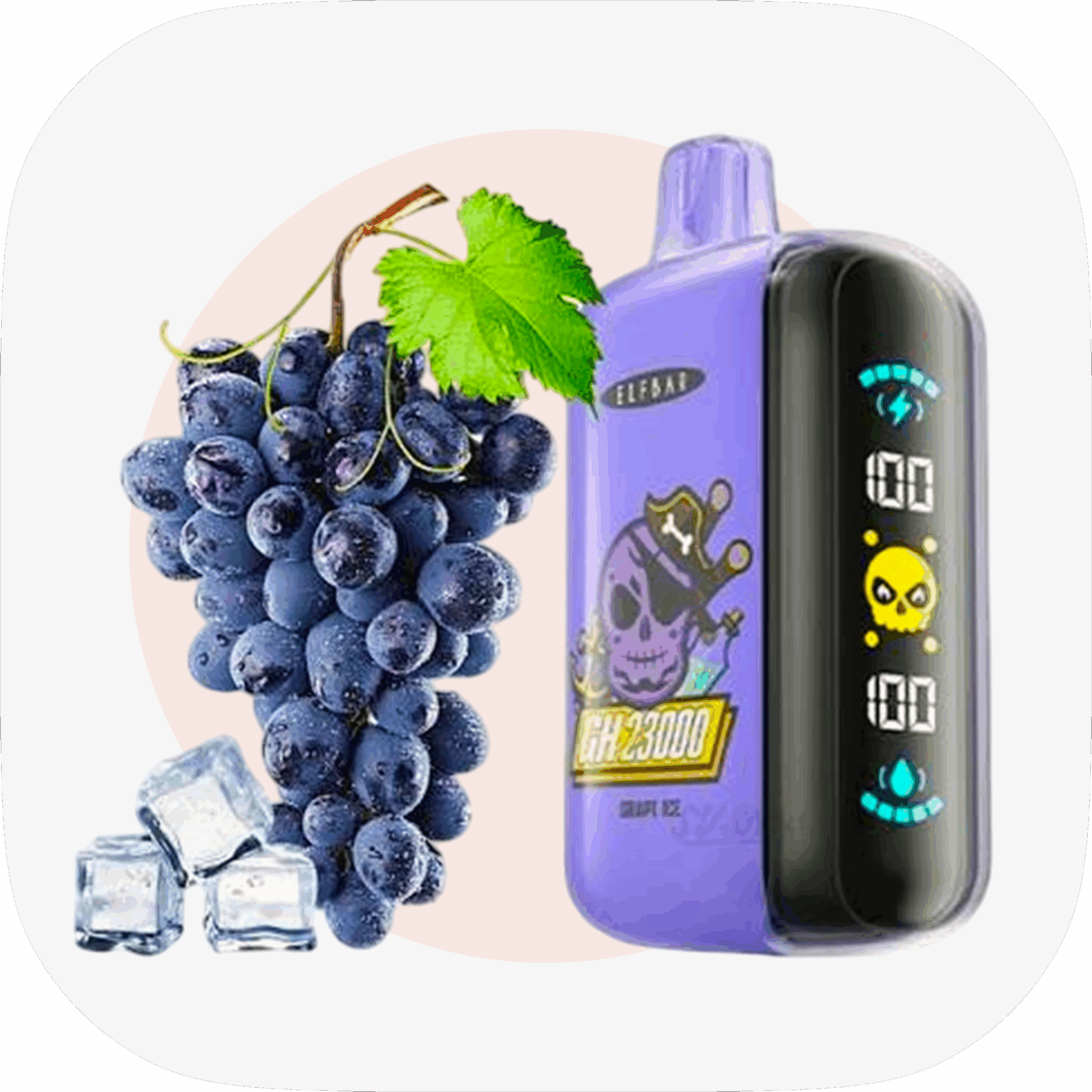 Elf Bar GH 23000 Grape Ice – це сучасна одноразова електронна сигарета з перезаряджуваним акумулятором, що пропонує до 23 000 затяжок. Вона вирізняється насиченим смаком льоду та винограду, а також оснащена дисплеєм для контролю заряду та рівня рідини.